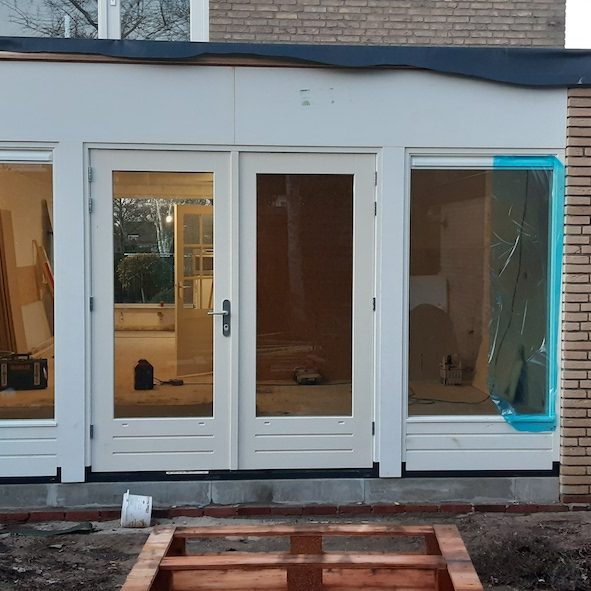 Maatwerk aanbouw / uitbouw. Het gehele ontwerp en realisatie door ons uitgevoerd. Door gebruik van duurzame materialen krijg je een strak en luxe uitstraling. Voor het dak maken wij gebruik van EPDM dakbedekking met een zinken deklijst als afwerking. Hierdoor ontstaat er een levensduur tussen de 40 en 50 jaar. In het dak Kun je ook door ons een lichtstraat laten monteren voor nog meer daglicht. De binnenzijde kun je geheel laten afwerken door ons, voor een casco aanbouw / uitbouw kunt u ook bij ons terecht. Deze aanbouw / uitbouw is een voorbeeld van wat er allemaal mogelijk is.