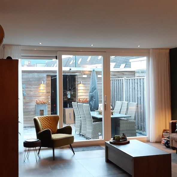 Maatwerk aanbouw / uitbouw. Het gehele ontwerp en realisatie door ons uitgevoerd. Door gebruik van duurzame materialen krijg je een strak en luxe uitstraling. Voor het dak maken wij gebruik van EPDM dakbedekking met een zinken deklijst als afwerking. Hierdoor ontstaat er een levensduur tussen de 40 en 50 jaar. In het dak Kun je ook door ons een lichtstraat laten monteren voor nog meer daglicht. De binnenzijde kun je geheel laten afwerken door ons, voor een casco aanbouw / uitbouw kunt u ook bij ons terecht. Deze aanbouw / uitbouw is een voorbeeld van wat er allemaal mogelijk is.